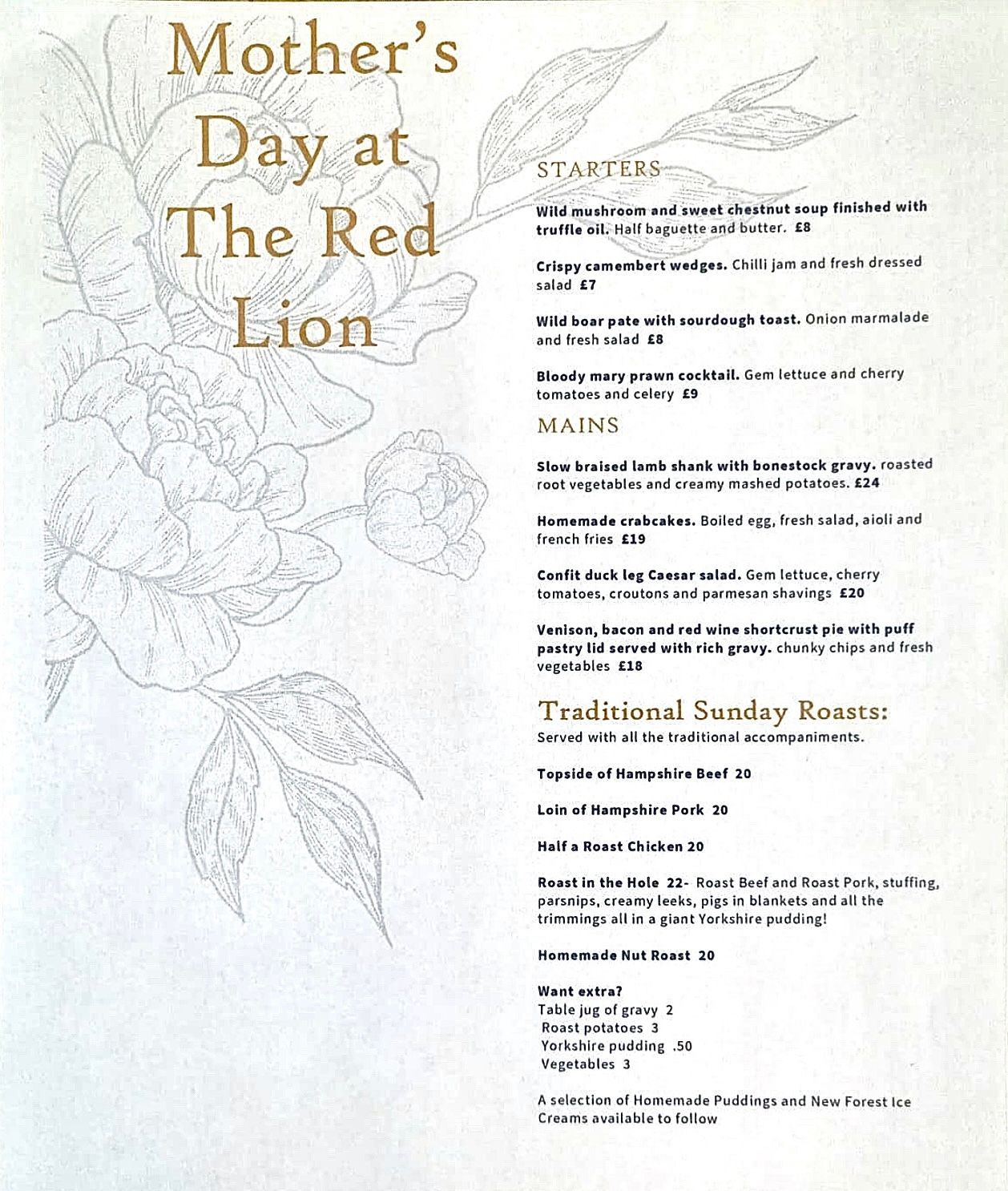 SEE OUR MOTHERING SUNDAY ( March 30th)